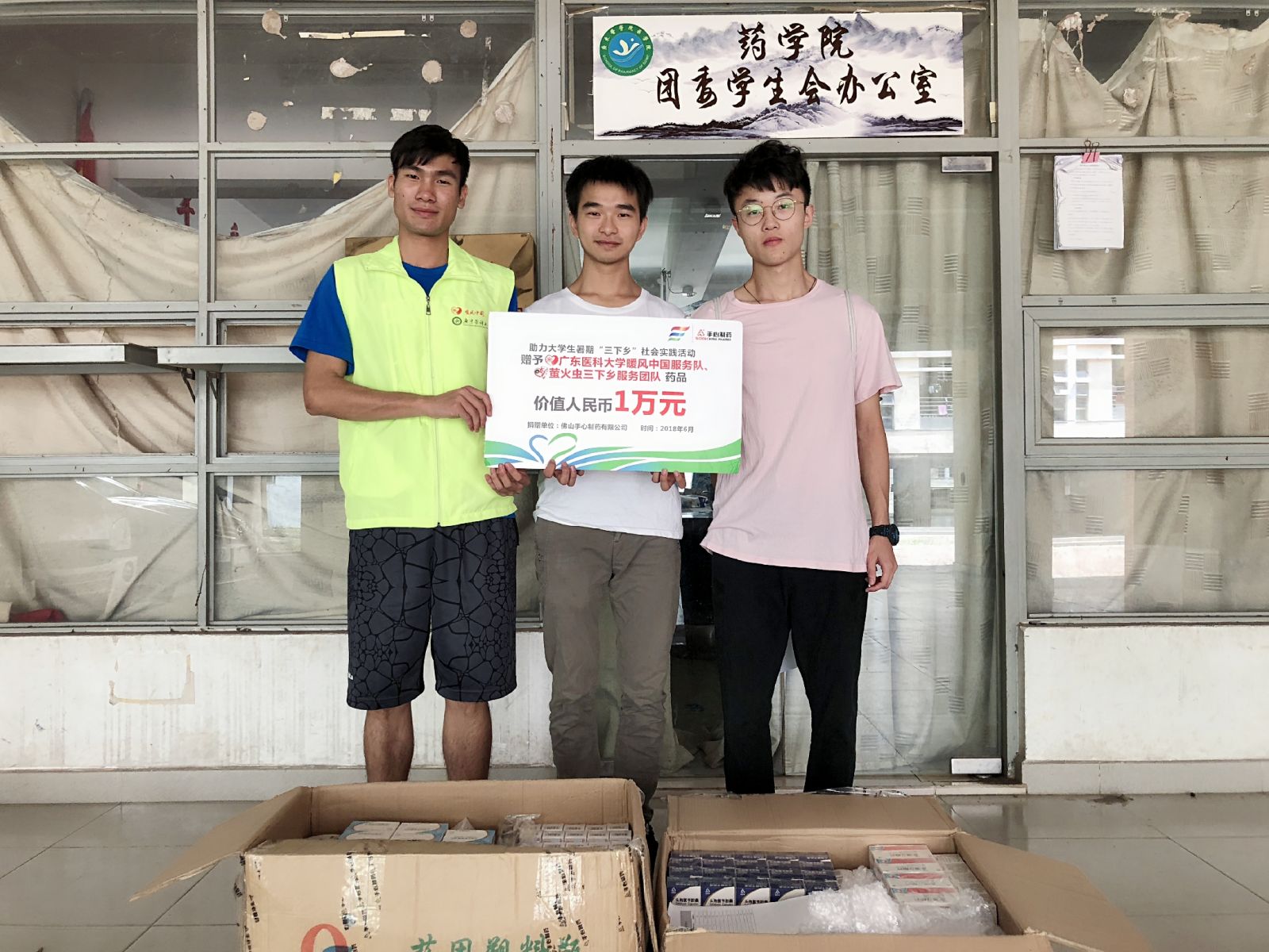 早在前兩天(7月1日),廣東醫科大學(xué)暖風(fēng)中國服務(wù)隊、螢火蟲(chóng)三下鄉服務(wù)隊也收到了手心制藥的藥品贈予。藥品包括鹽酸雷尼替丁膠囊、麻仁軟膠囊、雪哈蟲(chóng)草軟膠囊等,價(jià)值人民幣1萬(wàn)元。這些藥品也將會(huì )在下鄉期間送進(jìn)鄉村。