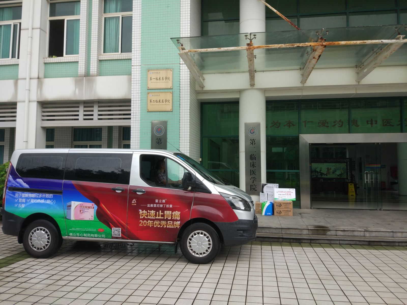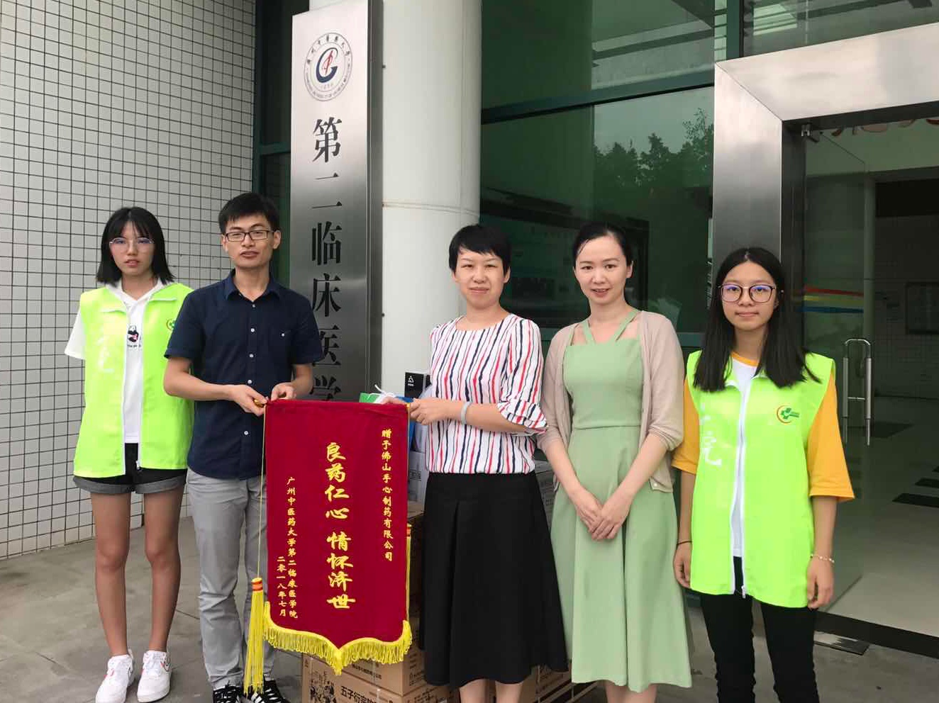 △手心制藥開(kāi)車(chē)抵達廣州中醫藥大學(xué),為第二臨床贈予藥品,學(xué)院以錦旗相贈表達謝意