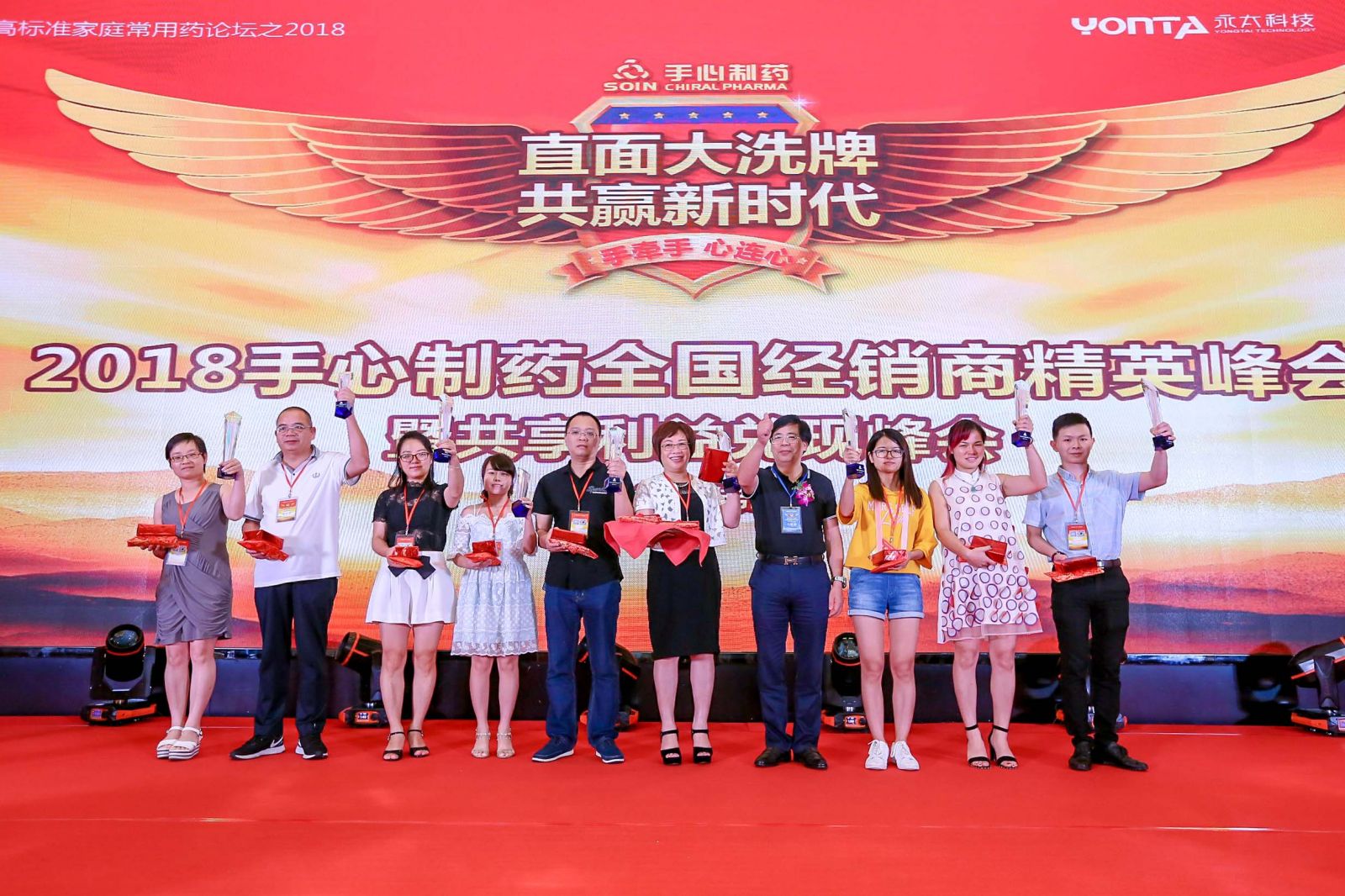 隨后的頒獎典禮,手心制藥現場(chǎng)頒獎了50多個(gè)與手心制藥保持良好合作關(guān)系的經(jīng)銷(xiāo)商單位,實(shí)現了利益兌現,互利共贏(yíng)的承諾!