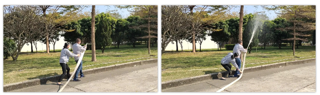 隨后,車(chē)間代表為大家講述各種滅火器的特點(diǎn),并示范滅火器、消防水帶的操作步驟,員工學(xué)習后進(jìn)行現場(chǎng)實(shí)操。