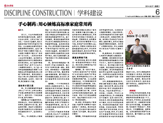 范偉榮:這個(gè)問(wèn)題提得很好。我始終認為,未來(lái)中國醫藥市場(chǎng)的博弈,品質(zhì)競爭才是王道?;谶@樣的判斷,我給手心制藥確定的發(fā)展目標就是永無(wú)止境地追求高品質(zhì)藥品的生產(chǎn),這是我的心里話(huà)。