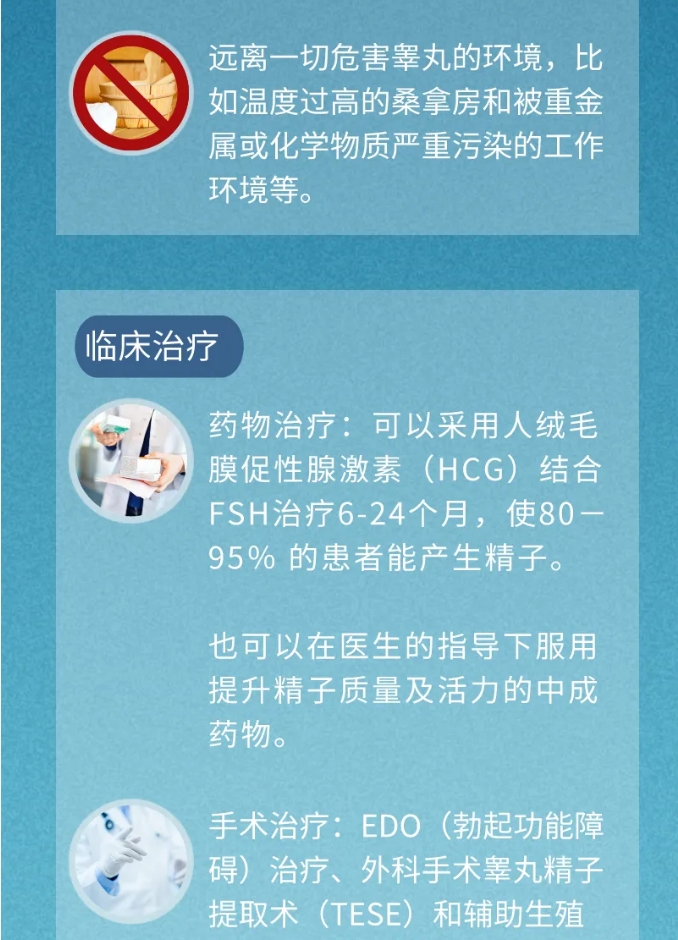 睪丸位于陰囊內,其溫度低于體溫,人類(lèi)精子在35.5℃~ 36.5℃才能正常生發(fā),如果陰囊長(cháng)時(shí)間處于高于體溫 1℃~ 2℃的環(huán)境中時(shí)就會(huì )引起睪丸內微環(huán)境、氧代謝和酶活性等改變,導致生精障礙。