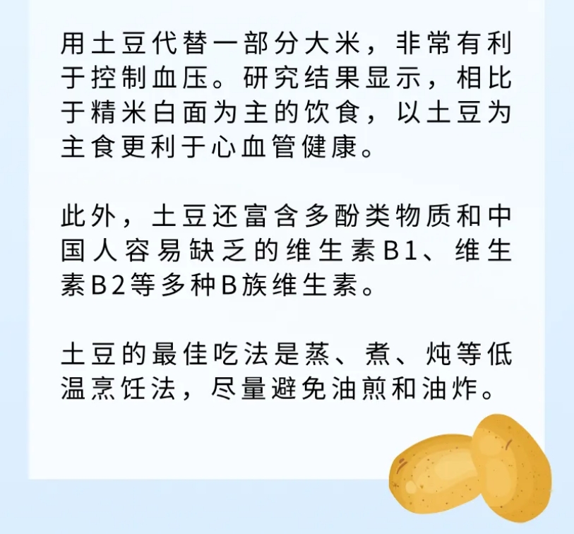 用薯類(lèi)替換一部分精米白面,能減少能量攝入,有助控制體重。