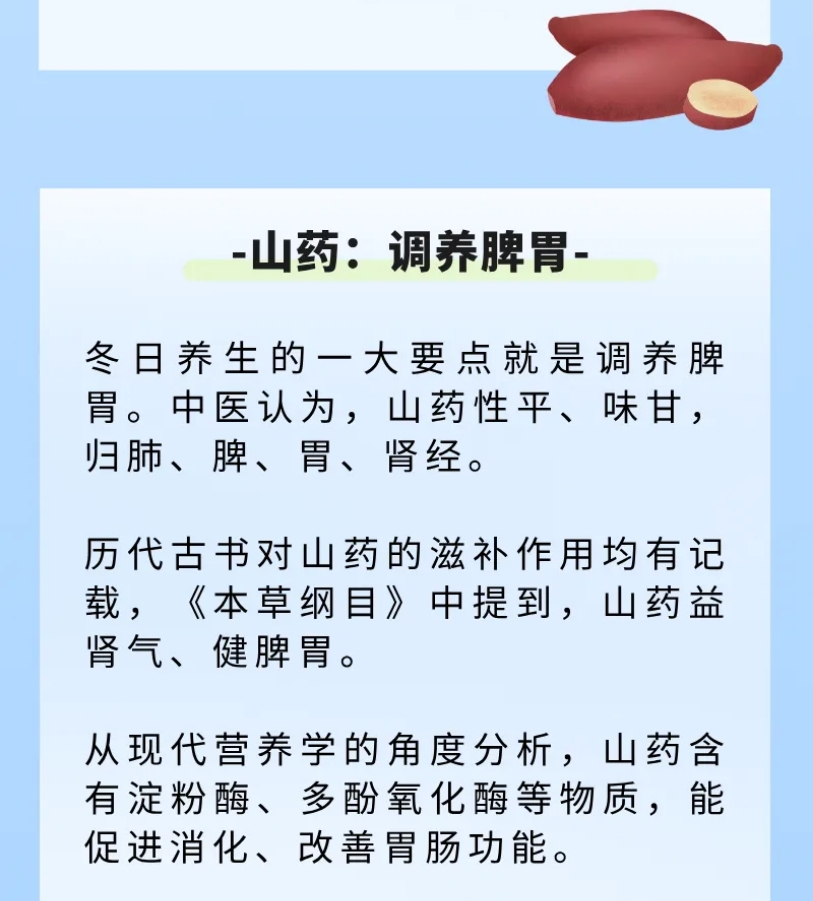 根莖類(lèi)作物中,薯類(lèi)食物是最推薦的“冬補佳品”,例如紅薯、紫薯、山藥、土豆等,它們含有豐富的維生素C,又可以當主食,飽腹又保暖。